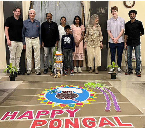 Observing Pongal, the Hindu harvest festival celebrated by Tamils.