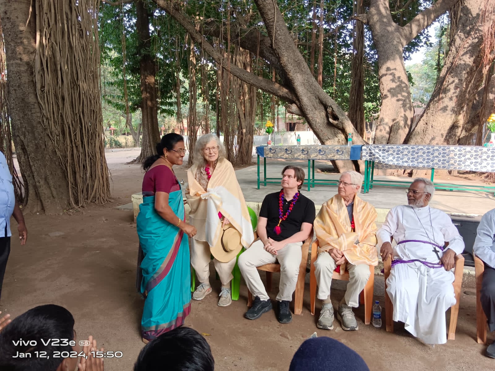 Foundation board member Jack Scudder Gillmar and his family were greeted with fanfare when they visited the Arni School in Tamil Nadu, India, in January, 2024, including a musical salute from Arni students.