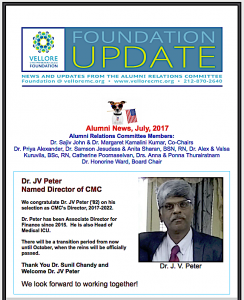 The Scudder Association would like to thank Dr. Sunil Chandy for his excellent service during his 4 year appointment and congratulate Dr. JV Peter on his selection as CMC Director.