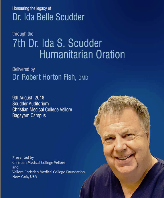 We are proud to announce that Dr. Rob Fish will be delivering the 8th Annual Ida S. Scudder Oration on the campus of the CMC Vellore Hospital and Medical School, 99 years after Dr. Scudder began practicing medicine in India.