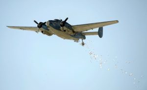 Gail Halvorsen throws chocolate and chewing gum on parachutes as the   “Candy Bomber” over Berlin in October 1948.