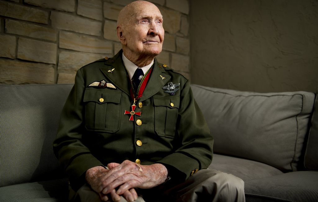 Gail Halvorsen, also known as the “Candy Bomber,” poses for a portrait at his son’s home in Midway on Wednesday, Oct. 7, 2020.[2]