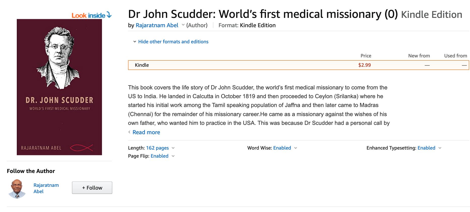 Access Amazon Books and “Dr. John Scudder: First Medical Missionary”